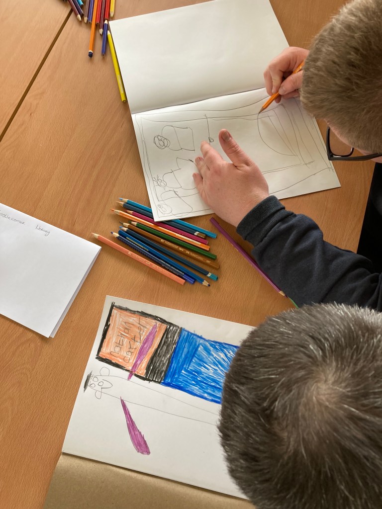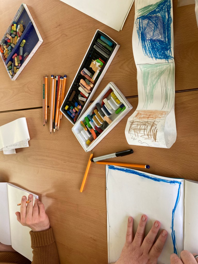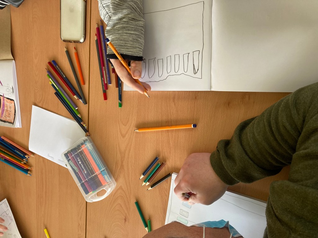We document and record our project collectively – through photography, video, text, reflective drawings and graphic recordings. We are building an archive, both digital and physical. Our web pages and the Deenview Project website are co-curated:
