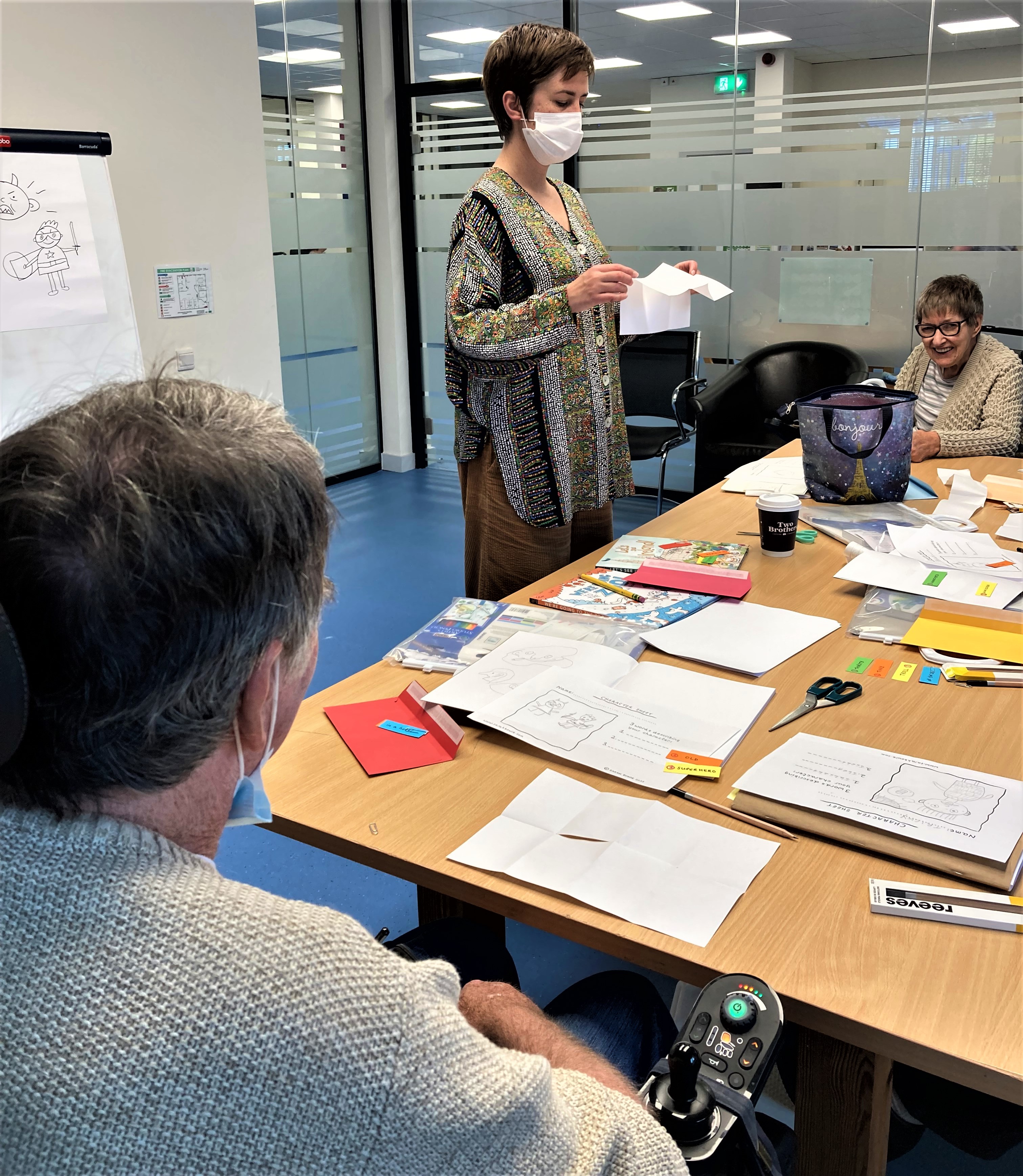 Sometimes our workshops overlap with other creative programmes – for example when we used wheelchairs for a wet felting process…